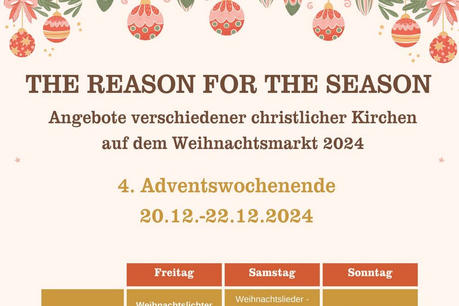 2024 gestalteten wir den Weihnachtsmarkt mit: Der Stand und ggf. ein Programm in der Adventskapelle wurde von verschiedenen christlichen Gemeinden und Gruppen aus Potsdam jeweils eigenverantwortlich im Rahmen der AcK gestaltet.